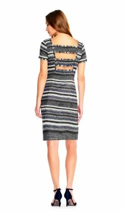 Adrianna Papell – AP1D101468 Stripe Patterned Sheath Dress With Cutout